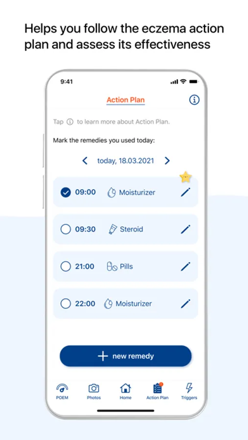 Eczema manager helps you to comply with your doctor’s recommendations and assess the effectiveness of the eczema treatment plan