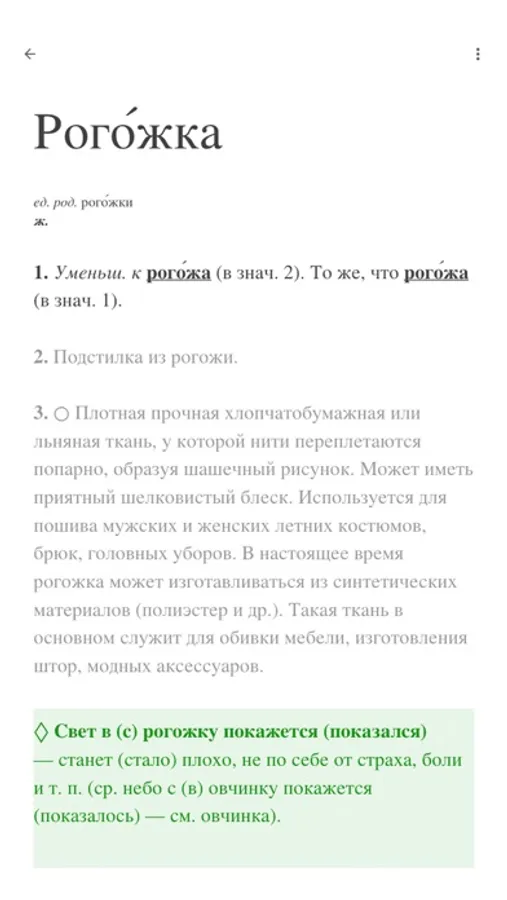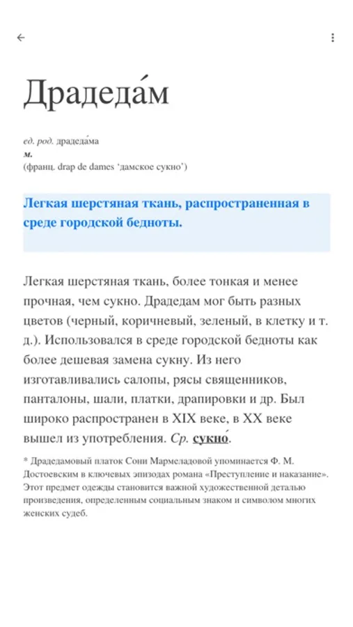 Вспомогательный, лексикографический модуль используется для разъяснения значений тех трудных слов, для которых пока не готовы статьи основного модуля. Модуль содержит около 10 000 существительных, толкования которых импортируются с сайта «Грамота.ру» и приводятся к единому, удобному для восприятия лексикографическому формату. Новые статьи основного модуля по мере появления будут автоматически замещать в приложении статьи модуля вспомогательного.