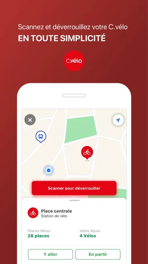 Une fois votre itinéraire planifié, Clermoov vous permet d'acheter vos titres de transport T2C, ou d'utiliser votre compte C.vélo directement dans l'appli pour emprunter un vélo et utiliser le service.