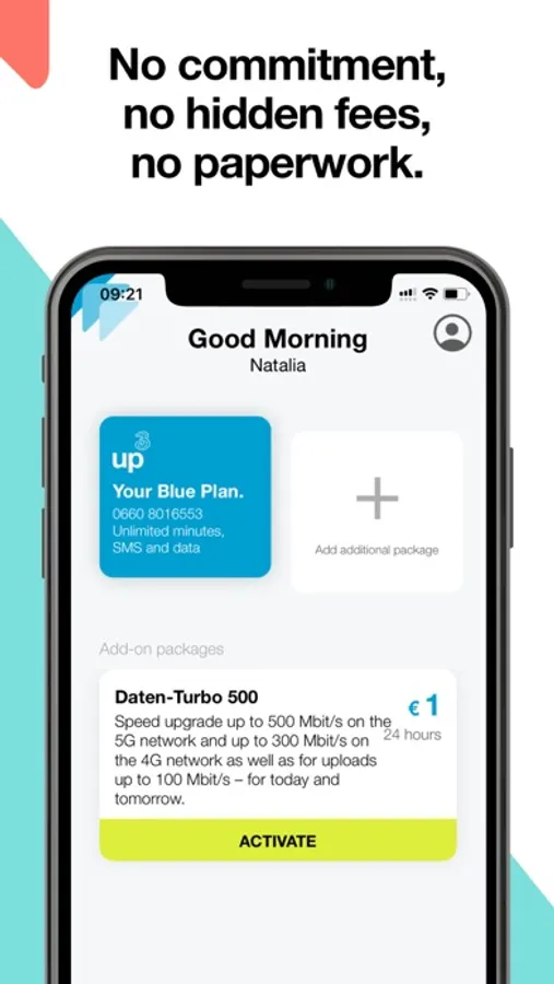 Installing physical SIM cards is a thing of the past! With up, you can now download your eSIM profile directly to your device and unleash unlimited power in just a few minutes. Without having to go to the shop, without any paperwork, without extra fees. Simply complete your subscription directly in the app, download your eSIM profile and “up” you go!