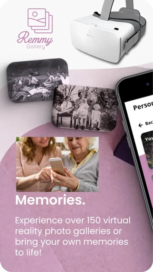 Discover RemmyGallery now: the 360° VR Gallery app for all photo lovers, seniors and people with dementia. With RemmyGallery you can experience a personal, virtual photo gallery! Create a photo show in a 360° virtual gallery with your photos and combine them with voice commentary or emotional music.