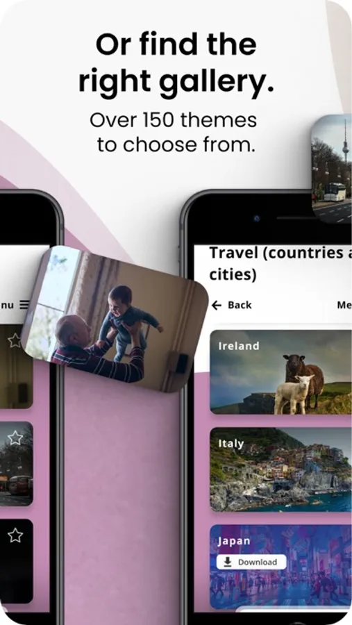 Depending on your preference, you can create an individual gallery with your favorite photos or enjoy plenty of variety with our numerous preloaded theme galleries -there should be something for everyone!