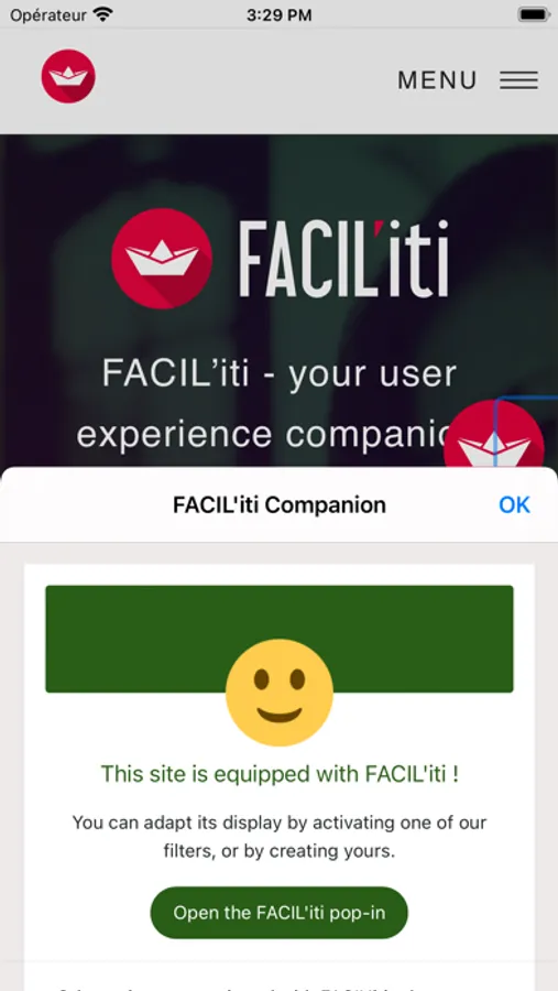 - find out, in a blink of an eye, if the site is equipped with FACIL'iti (and open the solution, if it is),