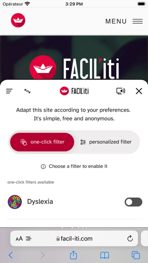 FACIL’iti is an innovative digital accessibility solution. It adapts the display of a website to individual needs, to make the browsing experience 100% comfortable (visual, motor, cognitive).