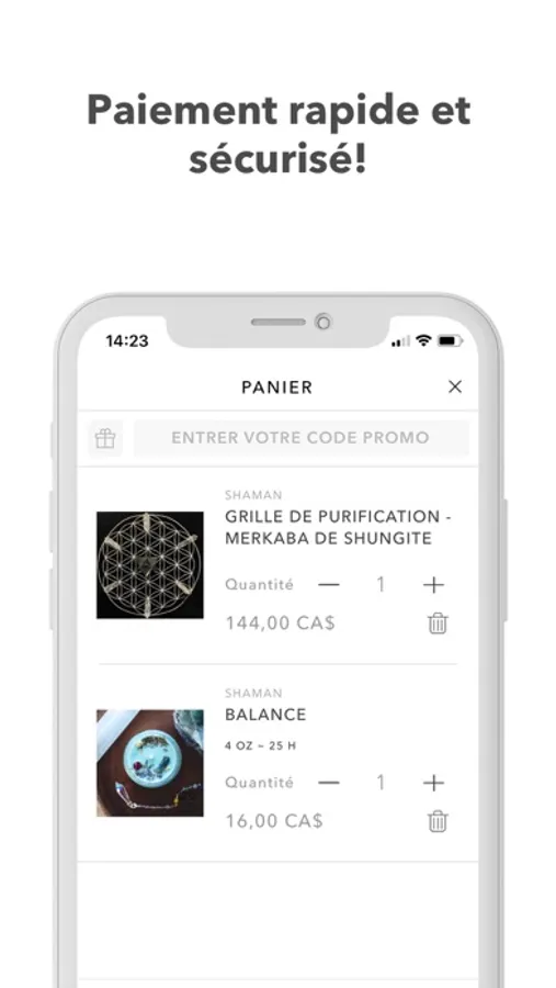 Nous avons développé notre site web depuis mars 2020. Nous avons environ 6000 articles a ce jour. Cadeau/Mieux-être/Spiritualité/Bijoux...On trouve de tout. L'application Shaman sera un outil qui facilitera encore plus le magasinage sur notre boutique en ligne. De superbes promotions exclusives attendent nos clients qui auront téléchargés notre application. De plus, notre programme de fidélité est plus facile d’accès maintenant et est encore plus généreux qu’auparavant.