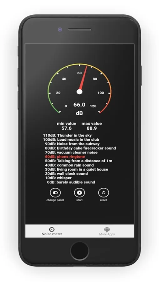 sound noise meter app is shows a decibel values by measure the environmental noise, displays measured dB values in various forms. You can experience tidy graphic design with high frame by this smart sound meter app.