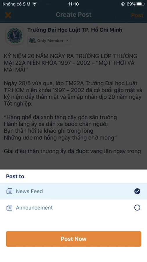 ULAW HCMC is a platform developed on Mobile App with two languages Vietnamese and English to help manage connection and communication activities of the student and alumni community at Ho Chi Minh City University of Law.