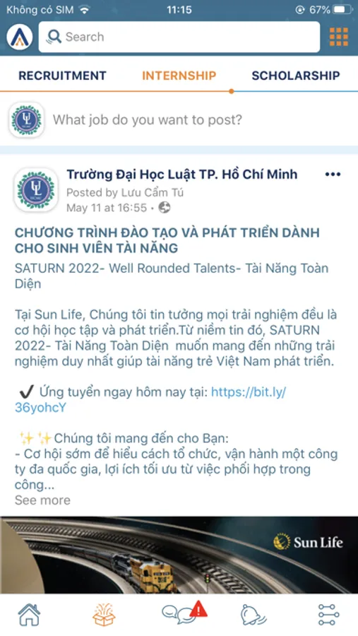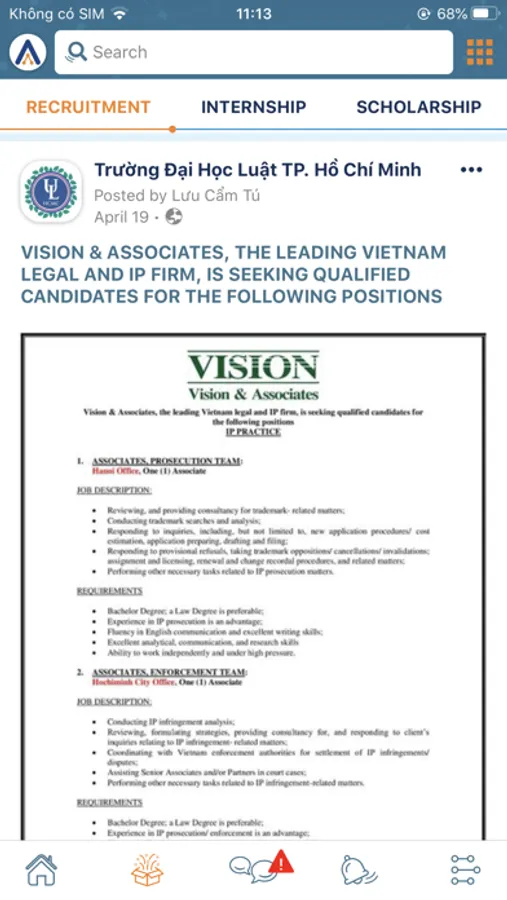 ULAW HCMC is an application to help the University of Law connect its students with alumni, creating a communication channel between the university and its students. From this platform, students can receive instant updates from the school and easily access internship, scholarship, and job opportunities from alumni.