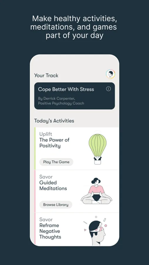 - Access products with tracks featuring evidence-based activities, games, meditations, and more