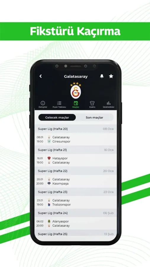Favori takım ve ligleriniz hakkında sizi güncel tutacak bildirimleri etkinleştirerek anlık bildirimler alabilirsiniz.