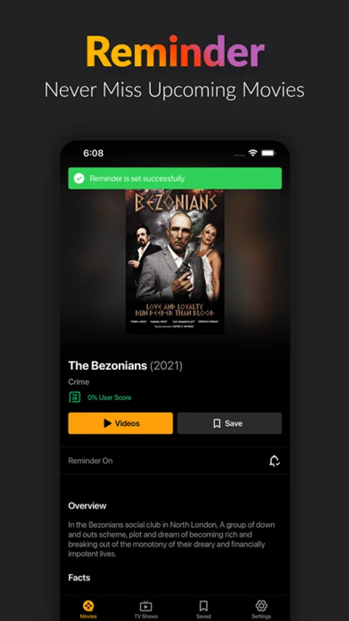 Be the first who watch! Use Reminder to get notified when any of the movies you are waiting for is released.