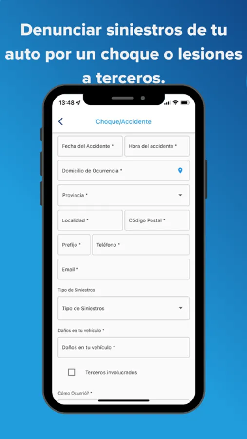 - Denunciar siniestros de tu auto, ya sea por un choque o lesiones a terceros.