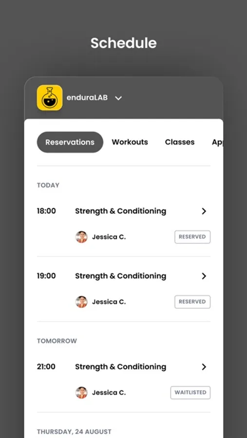 For members of enduraLAB to reserve their place in a class, sign up for gym events, and general account management like updating headshots and credit card on file.
