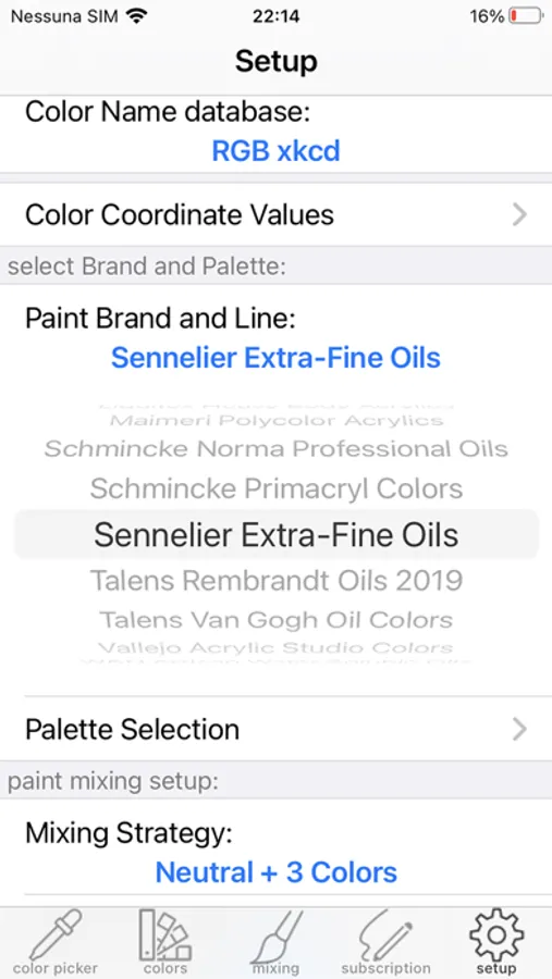 Real Paint Pro includes all above paint bases! You can select up to 12 colors (white + up to 11 colors) of each Paint Set. Without a subscription you can use the app only with the Ideal Paint Set.