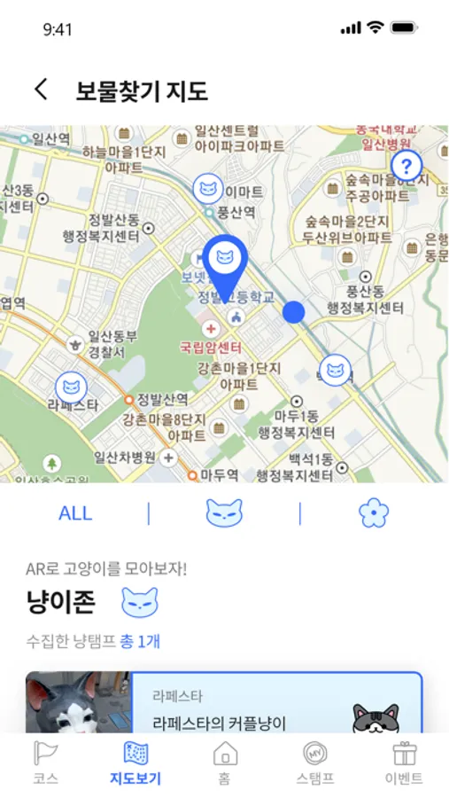 가자고양은 실시간으로 위치를 파악해서 사용자와 가까운 순서대로