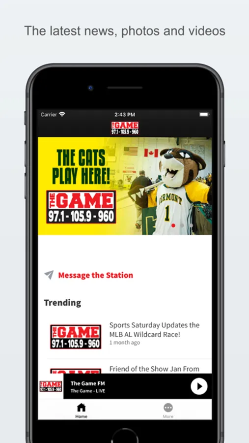 The Game is 97.1 in the Burlington Area, 105.9 in the Plattsburgh Area, and 960 Everywhere.