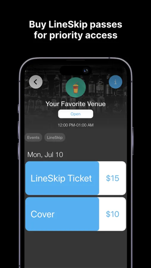 Experience the ultimate platform for going out. Use your in-app wallet to seamlessly purchase drinks, LineSkip passes, and more at your favorite venues. Add your friends to stay connected and never miss out on the action!
