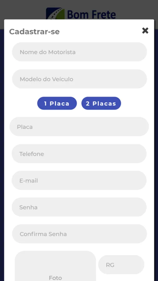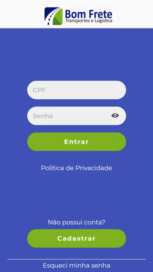 - Ele recebe um cadastro prévio (com login e senha) pela transportadora Bom Frete.