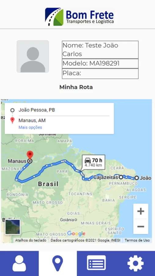 - Assim que o administrador aprovar o vídeo e definir a rota da viagem no sistema, o motorista poderá acompanhar a sua rota no mapa.