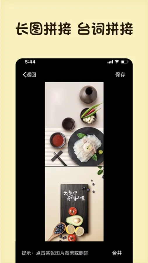 * 长图拼接:微信聊天记录拼接,台词拼接,多张美图拼接;
