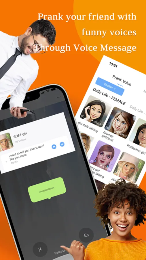Also MetaVoicer: Text to Speech (TTS) is a great way to prank your friends! We offer thousands of fake audio clips which you can use for prank calls or messages. Just select which voice and which clip you want to use, then you can just prank dial or send the fake message by social media. You can even use it in games, like PUBG or Call of Duty. Also, you can write your own prank text, and record it using one of our virtual voice actors. Your friends will never suspect it's you!