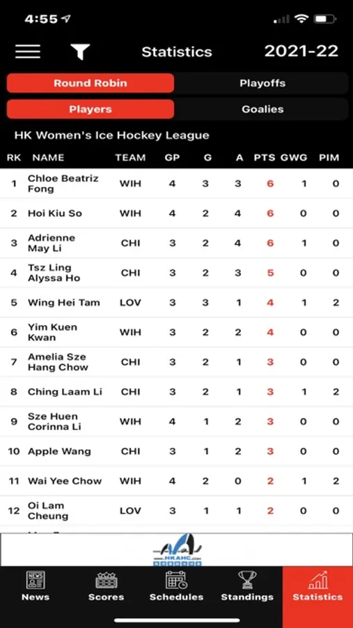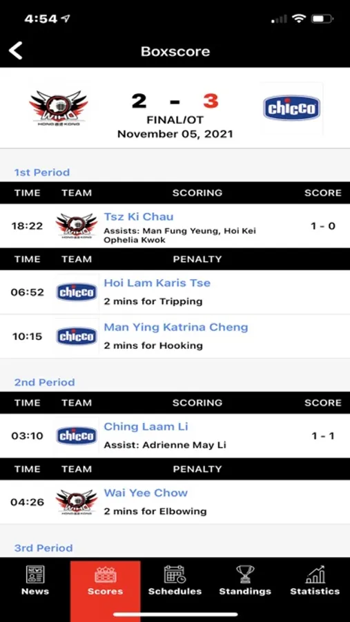 *New filtering feature allows you to track and follow specific hockey teams schedules, scores, statistics and standings.