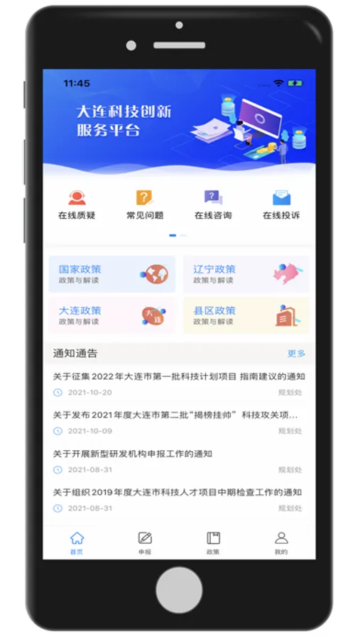 大连市科技项目管理平台集申报指南、通知通告、结果公示、科技奖励、国家政策、咨询电话等于一体。为用户提供便捷的项目信息查询、项目通知查询及电话咨询服务。