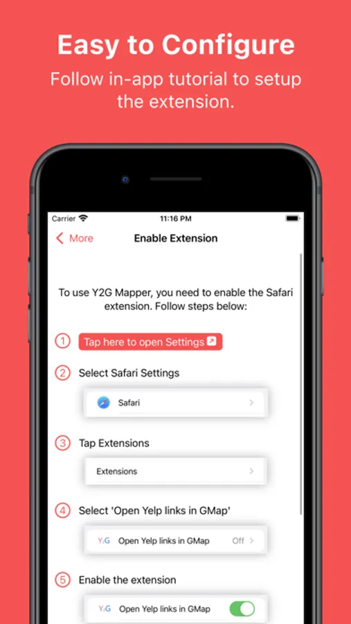 Y2G Mapper was built from the ground up for iOS 15 and iPadOS 15 using latest capabilities of the OS! It utilizes the brand new Safari web extensions feature, which means there is no need to manually activate the extension every time you load Yelp page.