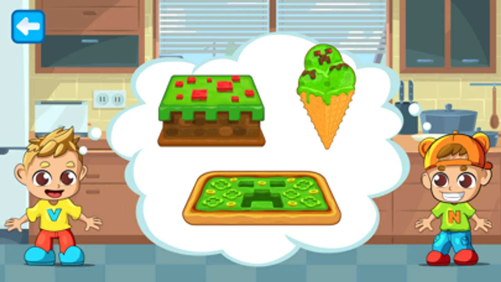 In this game, you'll find a menu of Vlad and Nikita's favorite dishes: cakes, ice cream, and pizza – just what you need for a good party! Will it be a dinosaur cake or a superhero ice cream? You decide! Grab the ingredients, knead, shape, and decorate them!