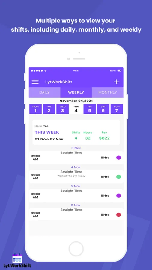 Lyt WorkShift is a application that helps you accurately record, analyze, and store your time, earnings, and taxes on shifts worked at your job.