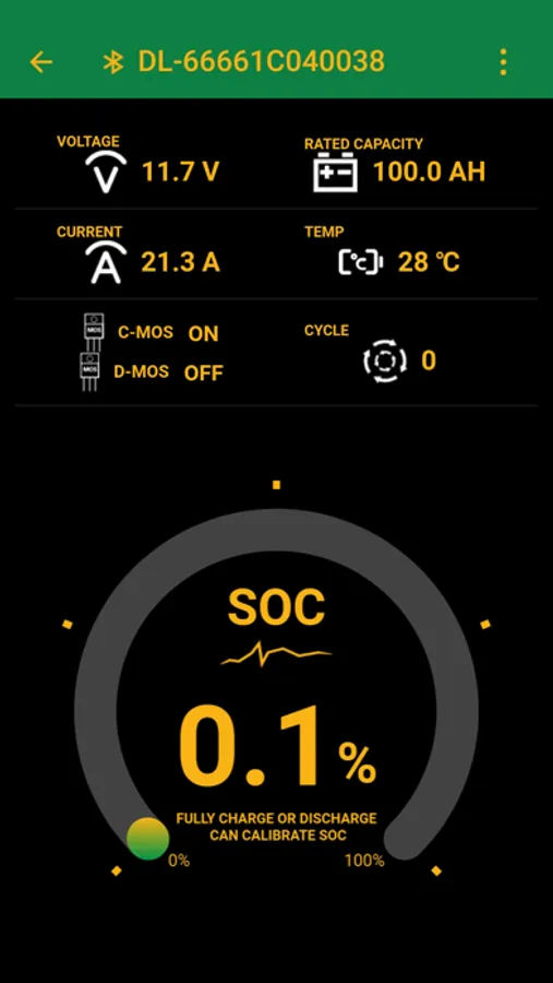 Voltage, rated capacity, current, battery temperature, charge and discharge state, number of cycles, calibration SOC.
