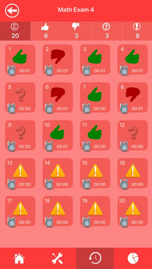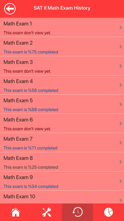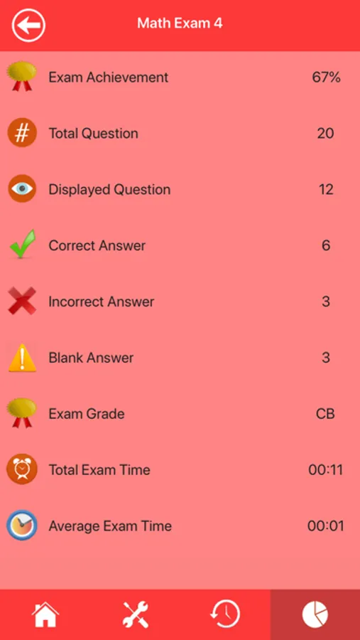- You can review a quiz session performance details by selected a session. This screen shows quiz history performance reports.