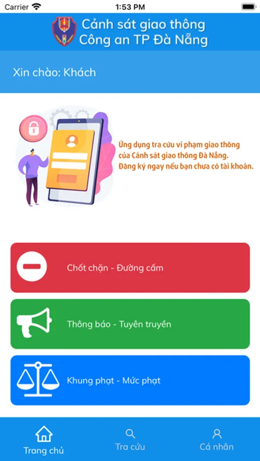- App Tra cứu vi phạm giao thông Thành Phố Đà Nẵng (Tra cứu giao thông) được xây dựng với mục tiêu để người dân thực hiện đăng ký, tra cứu lỗi vi phạm giao thông đường bộ.