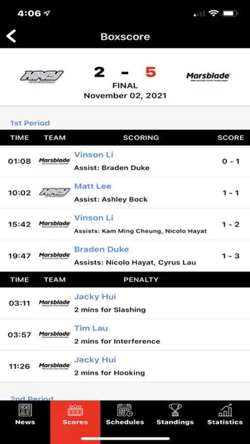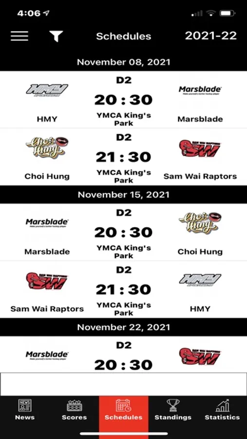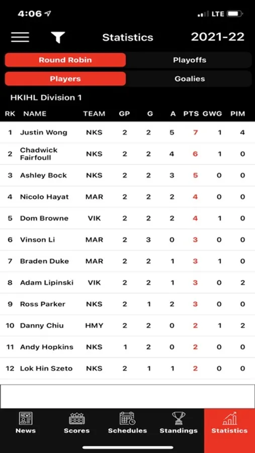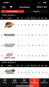 *New filtering feature allows you to track and follow specific hockey teams schedules, scores, statistics and standings.