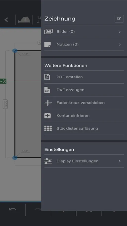 Falls in der Zeichnung etwas zu berücksichtigen ist, können Fotos oder Notizen angehängt werden. Die Daten werden automatisch in das PDF eingefügt.