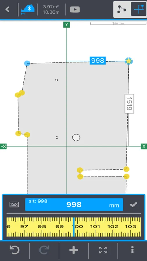 Kein digitaler Rollmeter parat? Sie können Maße auch manuell per Tastatur oder virtuellem Rollmeter eingegeben.