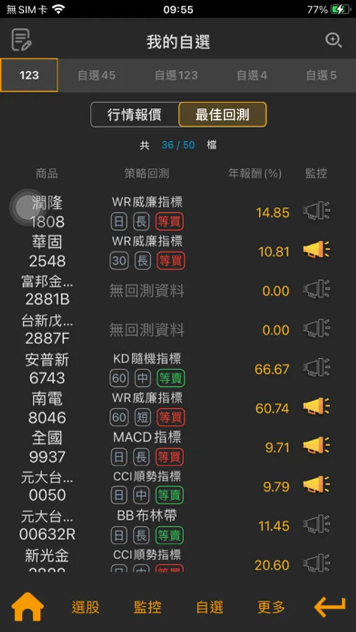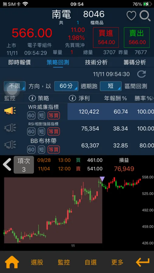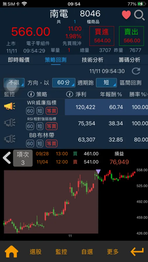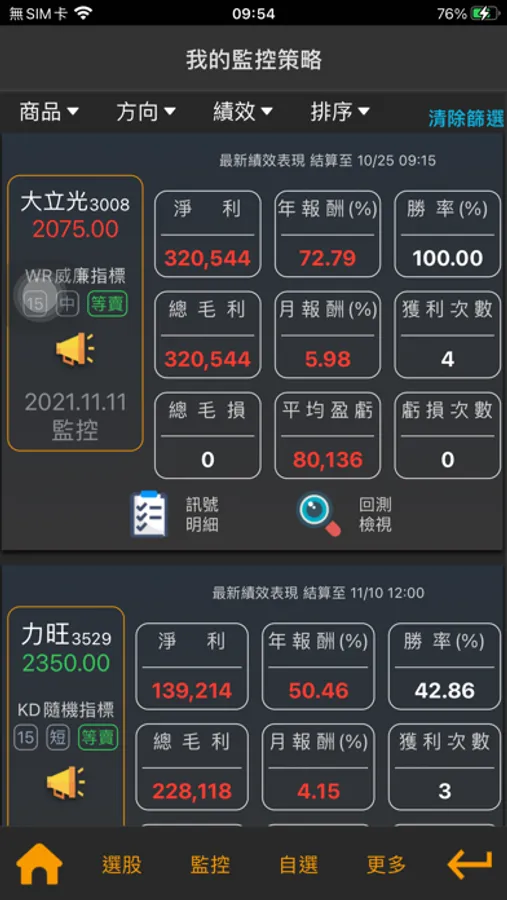 ● 歷史回測:圖像顯示個股數十種策略回測細節,績效表現全揭露