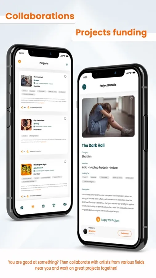 Are you dreaming of your song, want to work on a short film, or participate in a stage show? Then join our Platform now, built by artists, for the artists. We believe good productions require an excellent team of artists from various fields and financial support. So we developed a platform where you have all the needed features, from project planning networking to even funding.