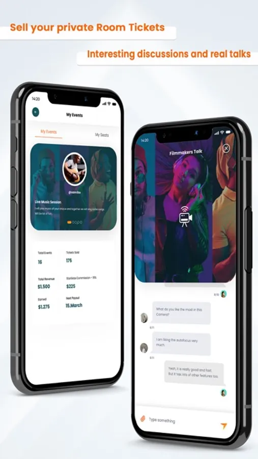 Our private online rooms allow you to have great conversations with your audience. Or start conversations and discussions on specific topics with other artists around the globe. Play music together or learn from each other.