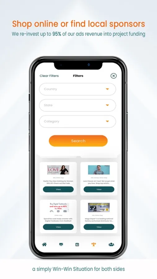 Discover and shop from your local vendors or online shop owners, and we re-invest up to 95% of our Ad revenue into Project financing. You buy from them, and they fulfill your dreams! A simple give-and-take solution for both sides.