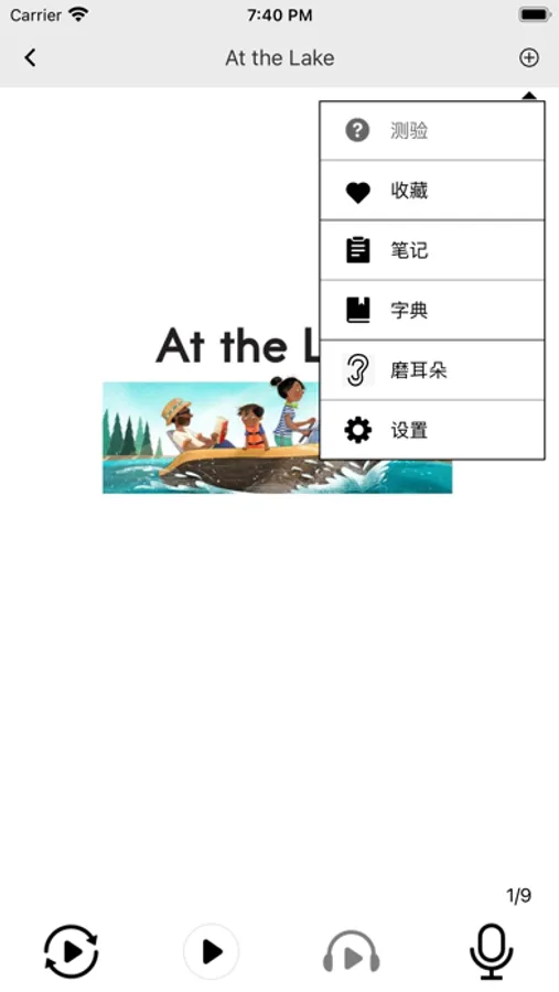 2、每篇书籍学习内容分阅读、录音、测验、翻译等功能,图文并茂,声情并茂,极大激发孩子的学习兴趣;