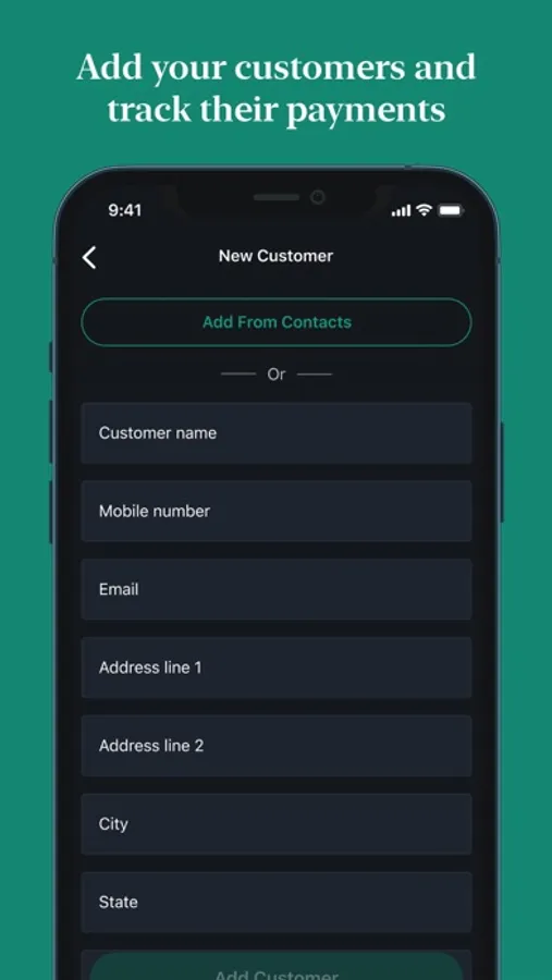 Add your customers data like name, mobile no, address etc. These details will be visible in the invoice PDF created by you for that customer.