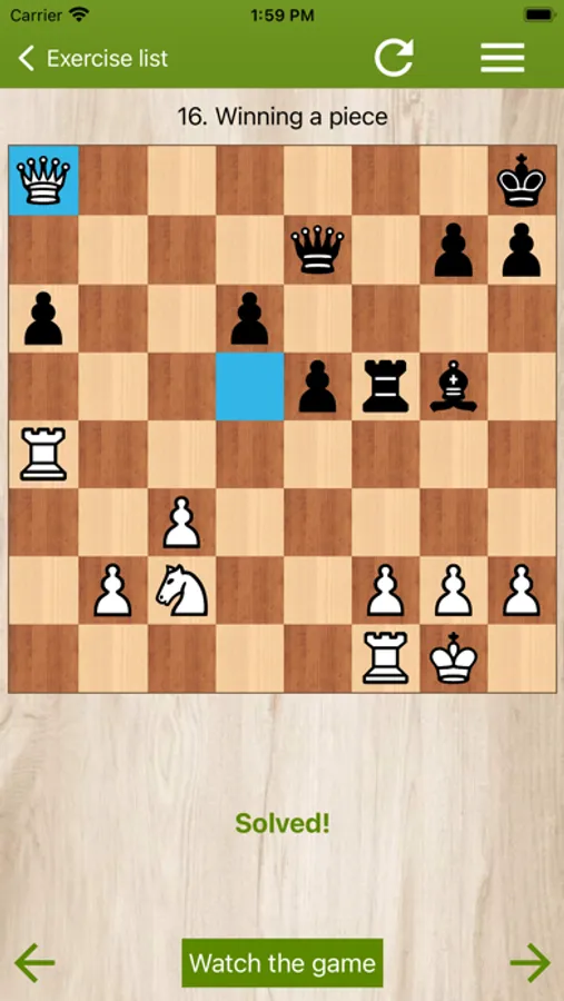 After solving each problem, an opportunity opens up to watch the entire chess game from which the position was achieved.