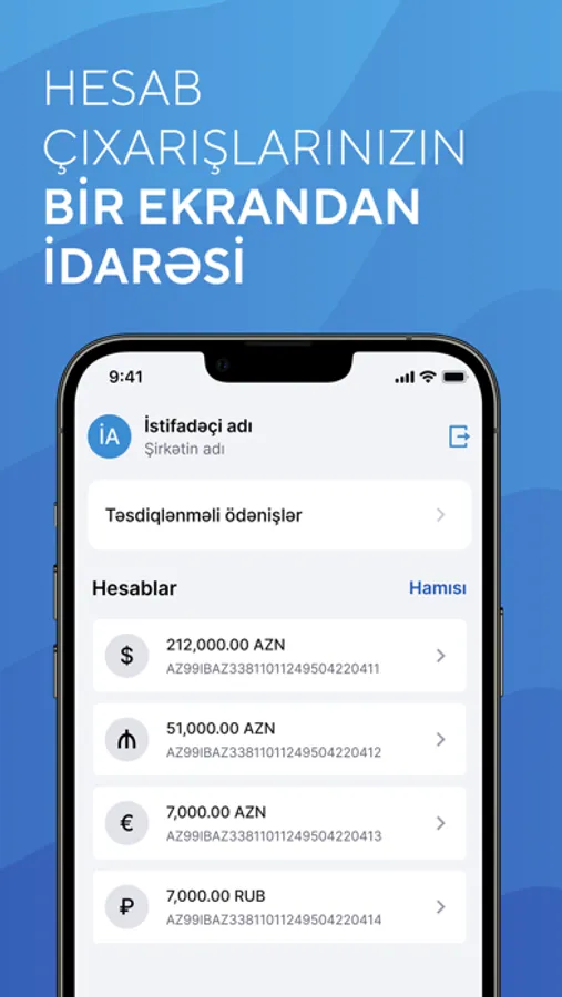 - Hesablara nəzarət. Cari və kart hesablarınızı daim nəzarətdə saxlayın;