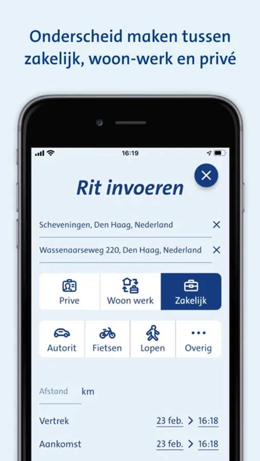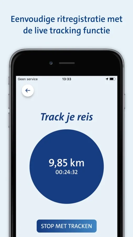 Maak je gebruik van je eigen vervoersmiddel dan kan je de live trackingfunctie gebruiken voor zakelijke ritregistratie. Met de real-time gps-tracking functie worden ritten automatisch bijgehouden terwijl je onderweg bent. In je overzicht zie je deze rit dan terugkomen met de afgelegde kilometers. Bij je vertrek zet je de tracking aan en bij aankomst zet je hem weer uit. Ben je vergeten de tracking aan te zetten dan kan je jouw reis ook nog handmatig invoeren.