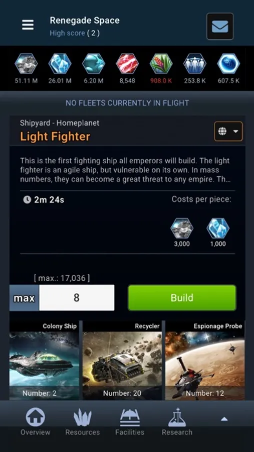 - Build a powerful space fleet, from fighters right up to a deathstar
