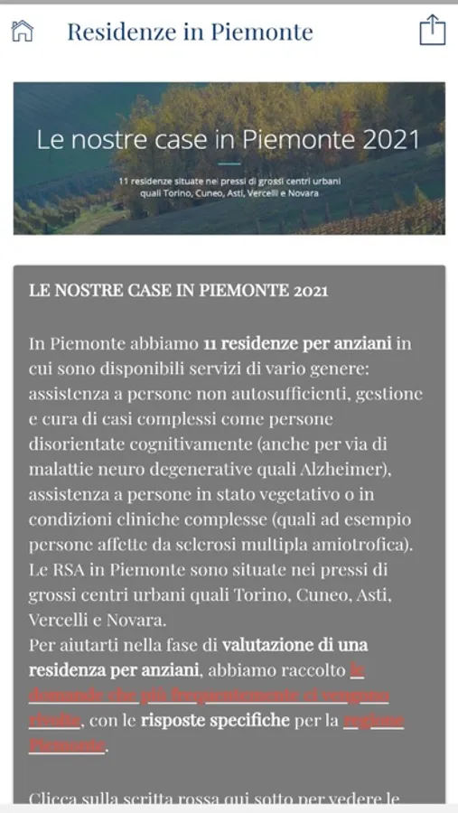 Nella nostra App potrete trovare la nostra Radio Anni Azzurri e tantissime altre informazioni su tutte le nostre Residenze nelle varie regioni italiane e tante informazioni su tutto quello che riguarda la scelta delle nostre realtà.