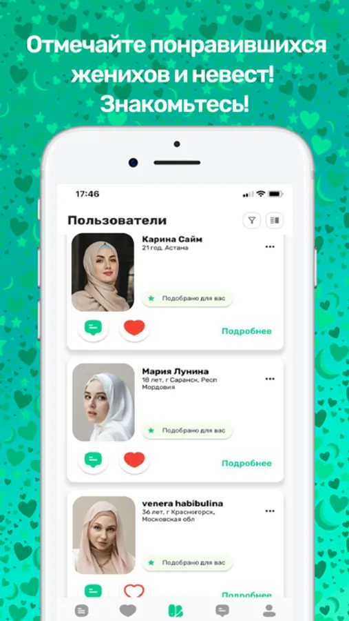 Именно поэтому мы создали NikahTime, приложение с широкими возможностями. Специальные фильтры учтут Ваши пожелания к кандидату в мужья/жёны. Вы сможете сами участвовать в процессе поиска и выбора спутника жизни. Задать понравившемуся человеку интересующие вопросы. А также получить помощь специалистов в организации встреч и общения.