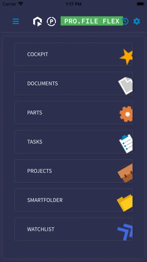 With the official PRO.FILE FLEX app you get easy and fast access to documents, parts, folders, tasks and projects of your PRO.FILE installation.