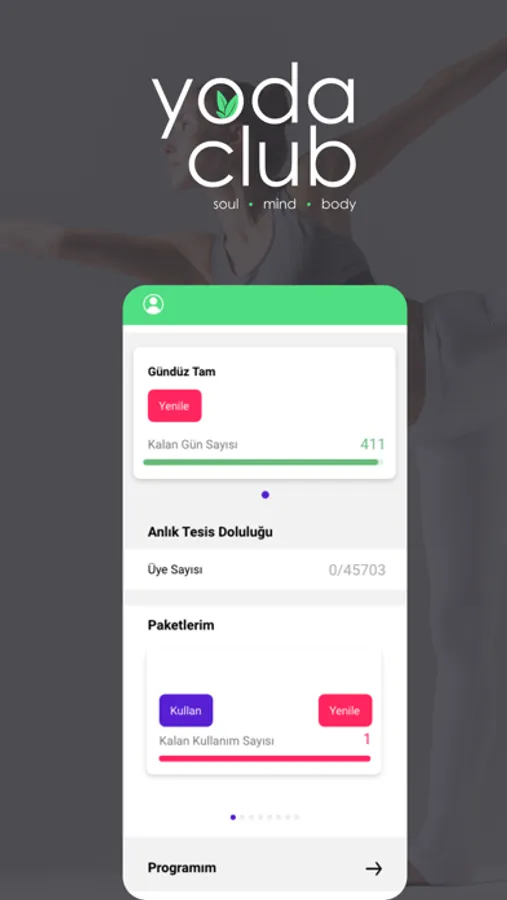 Yoda Club üyeliğinizi yönetmek için kullanılan bir IOS uygulamasıdır. Müsteri Programları, Ölçümleri, Rezervasyon Alma, Hizmet Satın Alma, Stüdyo Ders İşlemlerini gerçekleştirebilen Senkron Yazılım tarafından üretilmiş bir IOS uygulamasıdır.